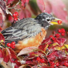 Hikers on Holcomb Farm’s Tree Trail pass a large kiosk on their way up the initial hill. The kiosk’s front side has a map of the trails; the back side has seasonal information on trees, biological processes and birds. The new bird information that went up this month is about robins that we see in Granby during the winter.