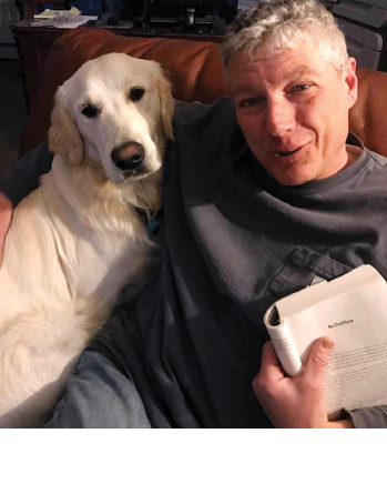Hobbs and Mark catching up on their winter/early spring reading. Submitted photo