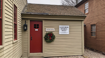 On the Sunday afternoon of Dec. 6, as dusk began to fall on the buildings of Salmon Brook Historical Society (SBHS), more than 50 society members and their guests gathered to welcome the holiday season.