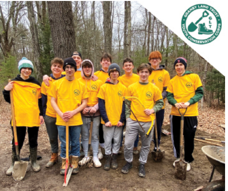 Members of the GLT Youth Conservation Corps, from left to right: Sean Kennedy, Luke Ranicar, Ben Lavigne, Jack Benoit, Andrew Meier, Aidan Henebry, Noah DelGallo, Patrick Liss, Max Kanter, Patrick Gilton, and Chas Orluk. Not pictured: GLT board members and job supervisors Dave Emery, Tim Heinze and Rick Orluk. Photo by Rick Orluk