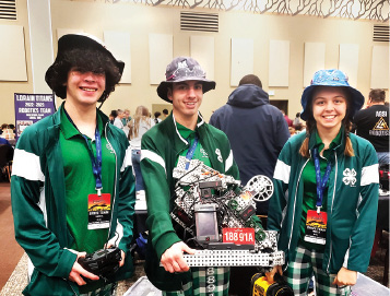 Granby’s own G-4s 4-H Robotics team attended the world’s largest robotics competition and brought home an award. Over 13,000 teams from more than 50 countries competed to earn one of 1,000 invitations to the 16th annual VEX Robotics World Championship held in Dallas in April. The three-day championship required teams to play the 2022-23 game, Spin Up, presented by the Robotics Education and Competition Foundation.