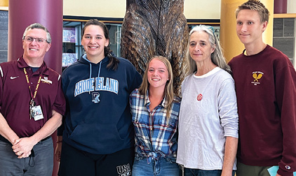This year Kelsi Stickels and Bryce Tomasino tied for first place, and Kylie Coxon’s submission placed third. From l.: Principal Mike Dunn, Kelsi Stickels, Kylie Coxon, Hollie Hecht (art teacher) and Bryce Tomasino.  Submitted photo