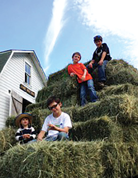 Each bale on the wagon, then up the elevator where that delicious hay would wait, stacked, for later.