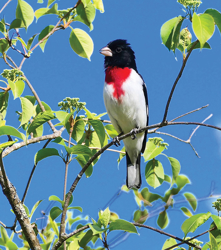 The group identified 54 species on the Sunday walk, “including,” says John, “looks at rose-breasted grosbeak, Baltimore oriole, scarlet tanager, yellow-throated vireo, black-throated blue warbler, two male wood ducks, chestnut-sided warbler and an adorable winter wren that piped up just before we got back to the parking lot.”