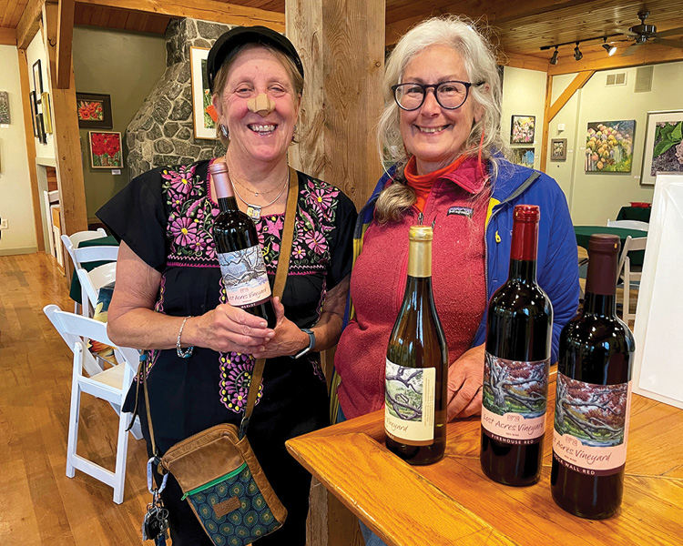Lost Acres Vineyard owner, Michelle Niedermeyer (right), honored Granby artist Laura Eden during a May reception unveiling the Vineyard’s new wine bottle labels.