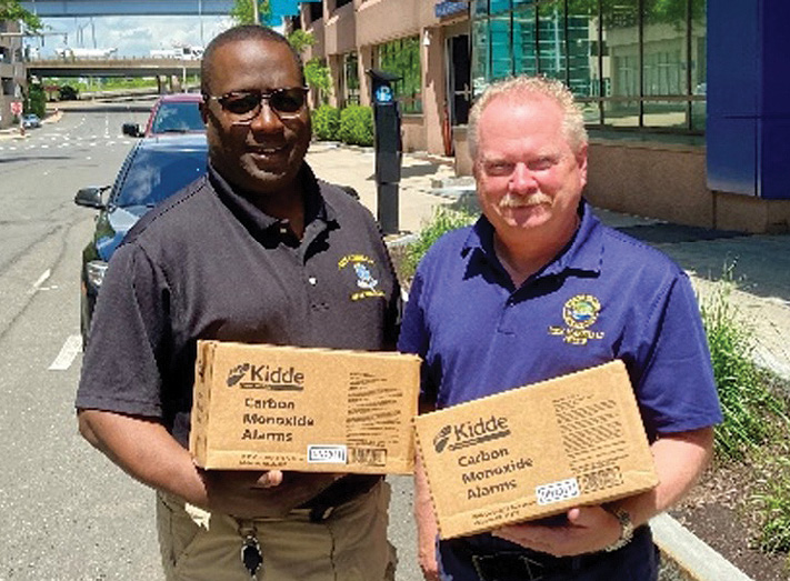 Granby received 24 Kidde combination smoke and carbon monoxide alarms from the Office of State Fire Marshal. Fire and Life Safety Specialist Alan Marshall (l.) and Fire Marshal Brian Long. Submitted by Brian Long