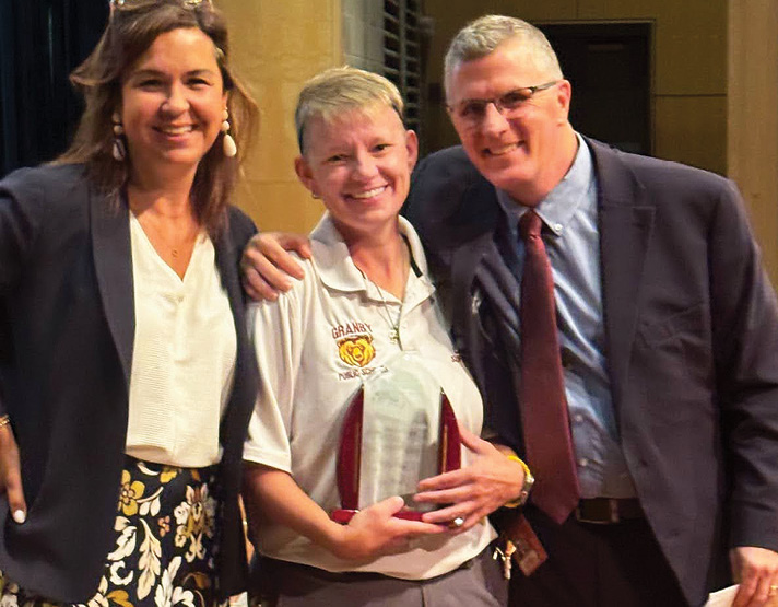 All Granby Public Schools staff engaged in a high energy convocation to explore our theme, Connect. Believe. Achieve, and prepare for the year ahead. Our Granby Teacher of the Year, Kristin LaFlamme, addressed her colleagues with a reminder about the power of teamwork and connection. We also celebrated the 2024 Granby Public Schools Staff Person of the Year, Bridget Sullivan, one of the GMHS campus supervisors.
