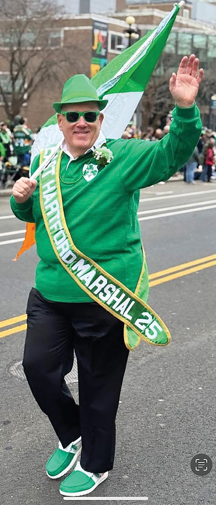 Mike Walsh was East Hartford’s marshal at St. Patrick’s Day parade