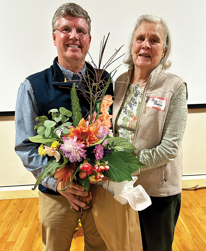 Paula Johnson, pictured with GLT President Rick Orluk, was recognized for her longtime service to the land trust. Photo by Doreen McWhirter