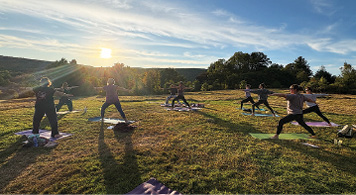 Holcomb Farm hosted two free yoga events led by yoga students Ania Poltarek and Teresa Bellmund at the Knoll on the Holcomb Tree Trail. In June, both instructors led a Summer Solstice Yoga class where participants were led through 108 sun salutations to celebrate the kickoff of summer. Participants noted they loved the outdoor location, with beautiful views from the Knoll.