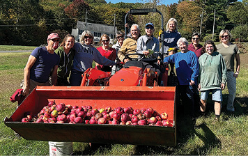 The Maletzes not only allow volunteers to come pick at their orchard, but they also assist with the process and give guidance on when each variety is ready to harvest. While Skip is on his tractor transporting bins of apples from the sprawling and scenic hills of their property to our parked vehicles, Shelly is helping us pick, rake drops, or is on her hands and knees helping to sort drops from under the trees. On our largest harvest day, Skip and Shelly volunteered their own truck to help transport bins of apples from their orchard to Holcomb Farm. This year, they also welcomed Granby B.E.A.R. Transition Academy students to volunteer with us, some of whom shared this was their first-ever apple-picking experience. Having these young adults and their mentors help us out brought our total number of Peck Orchard apple-picking volunteers to 27 individuals.