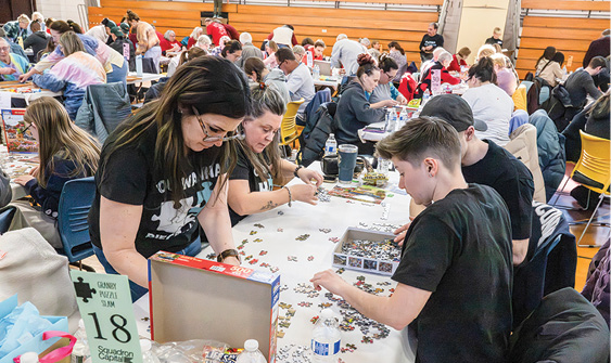 The 2026 Granby Drummer Puzzle Slam is geared towards all ages and all levels of puzzling proficiency. Teams of four will be given a “secret” 500-piece puzzle, which they unwrap and open when the timer is activated. There is no expectation for puzzlers in Granby’s Puzzle Slam to be at the professional level. All levels are welcome in this friendly competition.
