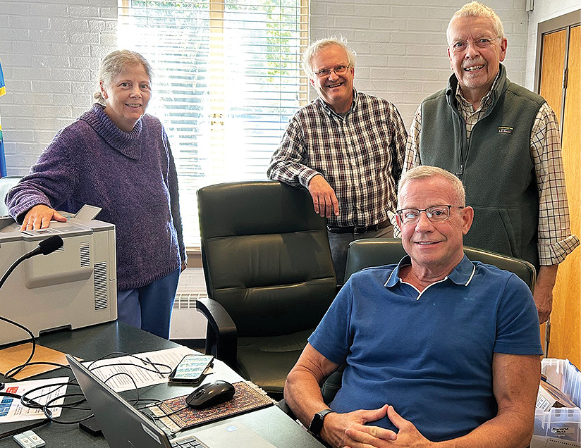 Standing, L-R: Laura Wolfe, Dan Wolfe, Paul Willis (all from the Registrar office) Seated: Rob Coffman (ES&S technician) Submitted photo