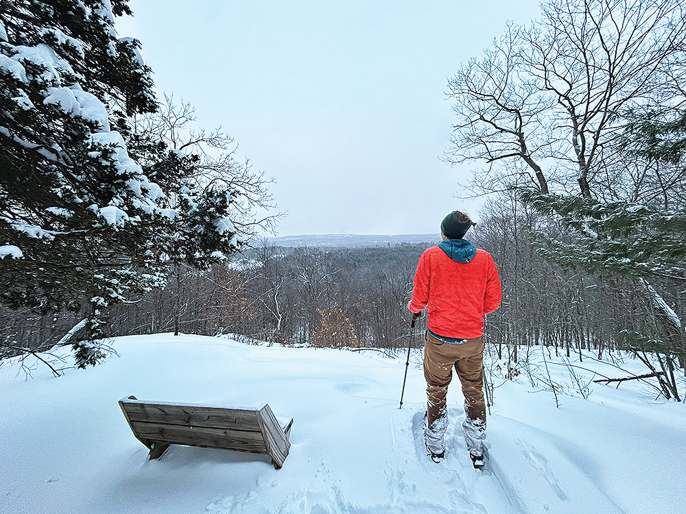 This winter’s snow has created terrific conditions for outdoor enthusiasts on Granby Land Trust trails. One can find snowshoe and cross-country ski tracks on many of its properties. This photo of a GLT member taking in the view from the scarlet tanager lookout on the Schlicht Family Preserve (accessible via the  Katan-Ensor Preserve trailhead) was featured in the Connecticut Land Conservation Council’s e-newsletter in January.