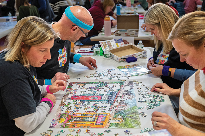 The event has grown—and sold out—each year. One of the most rewarding characteristics, according to the organizers, is the number of repeat teams that compete each year. A second satisfying aspect is the two carloads of puzzles that participants brought to the Slam and donated for the Friends of the Granby Public Library annual puzzle sale.