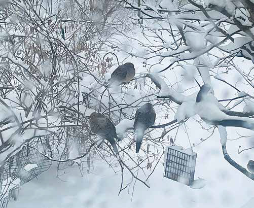 Shirley Murtha shared, “These three doves must be miserable, but they make for a lovely photo. Taken Feb. 23 out my kitchen window.”