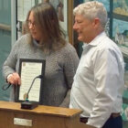 On Dec. 15, First Selectman Mark Fiorentino presented retiring board of selectmen member Kelly Rome with a plaque honoring her many years of continuous service to the Town of Granby.