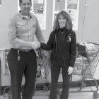 Local rescue organizations were the recipients of a pet food drive at Granby’s Stop & Shop. On top, Angel Cruz, Stop & Shop store manager, shakes hands with Lisa Schmitt, owner of Mary’s Kitty Corner in Granby, one of the recipients.