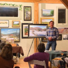 Artist Thomas Adkins talks about his oil painting Winter Stream at the GLT Art Talk at Lost Acres Vineyard in North Granby. At this free event, four award winning artists—Karen Israel, Jim Laurino, Rick Daskam, and Thomas Adkins—discussed the artistic process and methods they use to create their art.