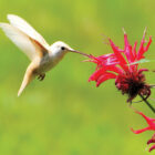 A rare leucistic ruby-throated hummingbird was spotted by Granby resident Denise Canora in her expansive flower garden, which is frequented by a steady flight of birds, butterflies and other pollinators.