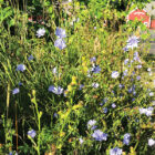 At Holcomb Farm, the gravel path leading up to the East Fields from Day Street South is bordered by brilliant blue cornflowers (above) attracting all sorts of bees, and by Joe-Pye weed (below).